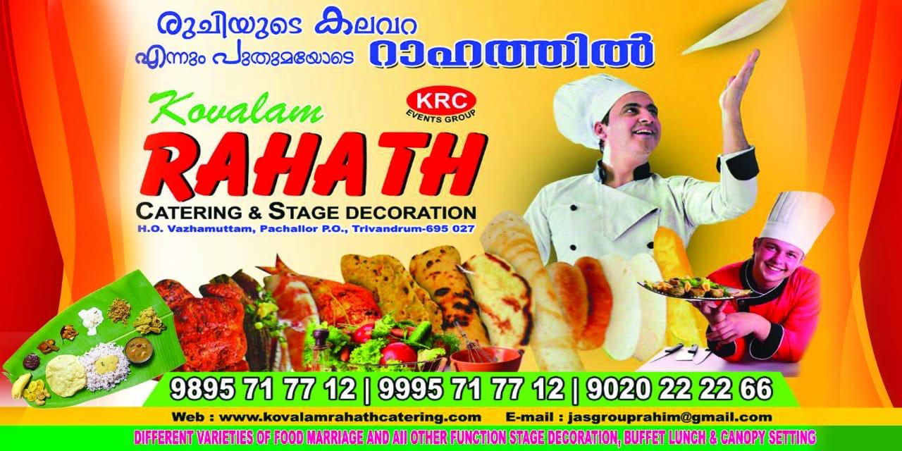 Kovalam Rahath Catering (KRC) is a dedicated catering service that showcases our signature dishes, event menus, and culinary craftsmanship. Our website is designed to give you a complete view of what we offer however, online purchasing or ordering is not available.